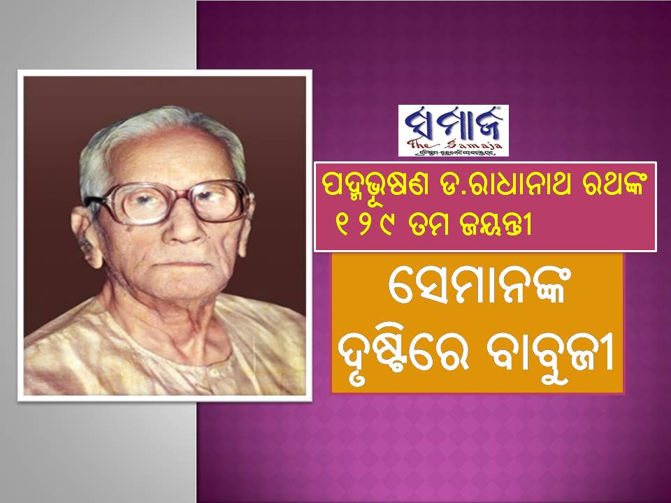 ସମାଜସେବା ଏବଂ ସାମ୍ବାଦିକତା କ୍ଷେତ୍ରରେ ତାଙ୍କର ଦାନ ଅନବଦ୍ୟ। ଶତାୟୁପୁରୁଷ ଡକ୍ଟର ରାଧାନାଥ ରଥ ଆମ ଜାତିର ଗର୍ବ, ଗୌରବ ଏବଂ ଏକ ସମୁଜ୍ବଳ ଆଲୋକସ୍ତମ୍ଭ। ଉତ୍ସର୍ଗୀକୃତ ଓ ସମର୍ପିତ ତାଙ୍କର ଦୀର୍ଘ ଜୀବନକାଳ। ସେ ଏକ ପରିପୂର୍ଣ୍ଣ ବ୍ୟକ୍ତିତ୍ବ।