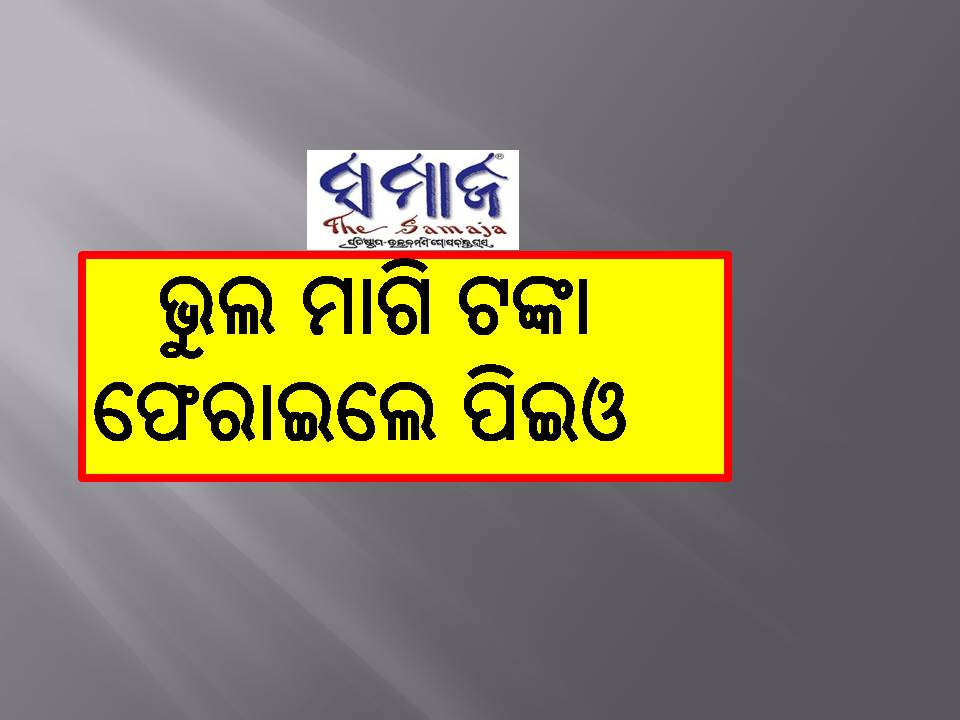 ଭତ୍ତା ଟଙ୍କା ଆତ୍ମସାତ୍‌ ଘଟଣା: ଭୁଲ ମାଗି ଟଙ୍କା ଫେରାଇଲେ ପିଇଓ