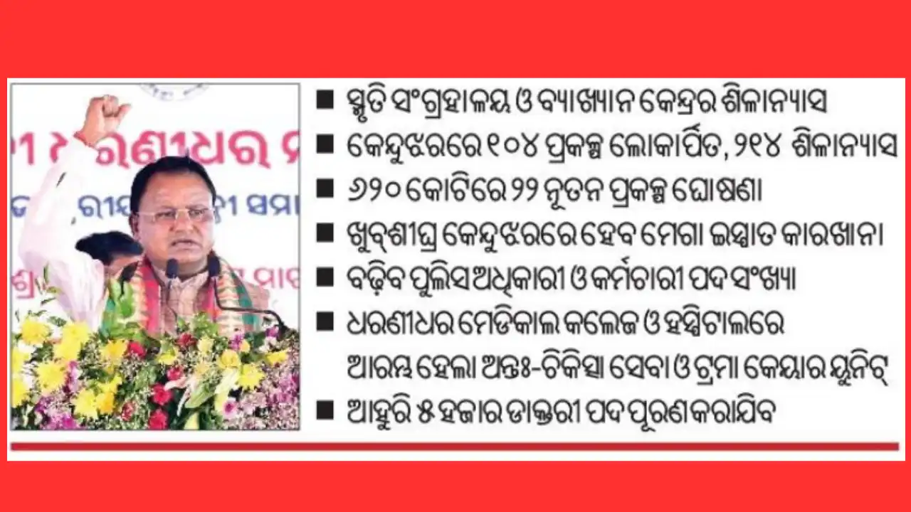 ଭୁବନେଶ୍ୱର:ଆଜି ମୁଖ୍ୟମନ୍ତ୍ରୀ ଶ୍ରୀ ମୋହନ ଚରଣ ମାଝୀ କଟକ ସହର ଗସ୍ତରେ...
