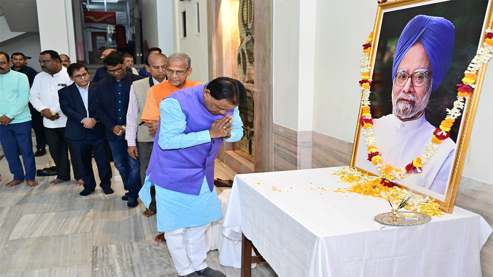 ଭୁବନେଶ୍ୱର: ଆଜି ଲୋକସେବା ଭବନ ଠାରେ ମୁଖ୍ୟମନ୍ତ୍ରୀ ମୋହନ ଚରଣ ମାଝୀ ପୂର୍ବତନ ପ୍ରଧାନମନ୍ତ୍ରୀ ସ୍ୱର୍ଗତ ମନମୋହନ ସିଂହଙ୍କ ଫଟୋଚିତ୍ରରେ ପୁଷ୍ପ ପ୍ରଦାନ କରି ଶ୍ରଦ୍ଧାଞ୍ଜଳି ଅର୍ପଣ କରିଛନ୍ତି ।