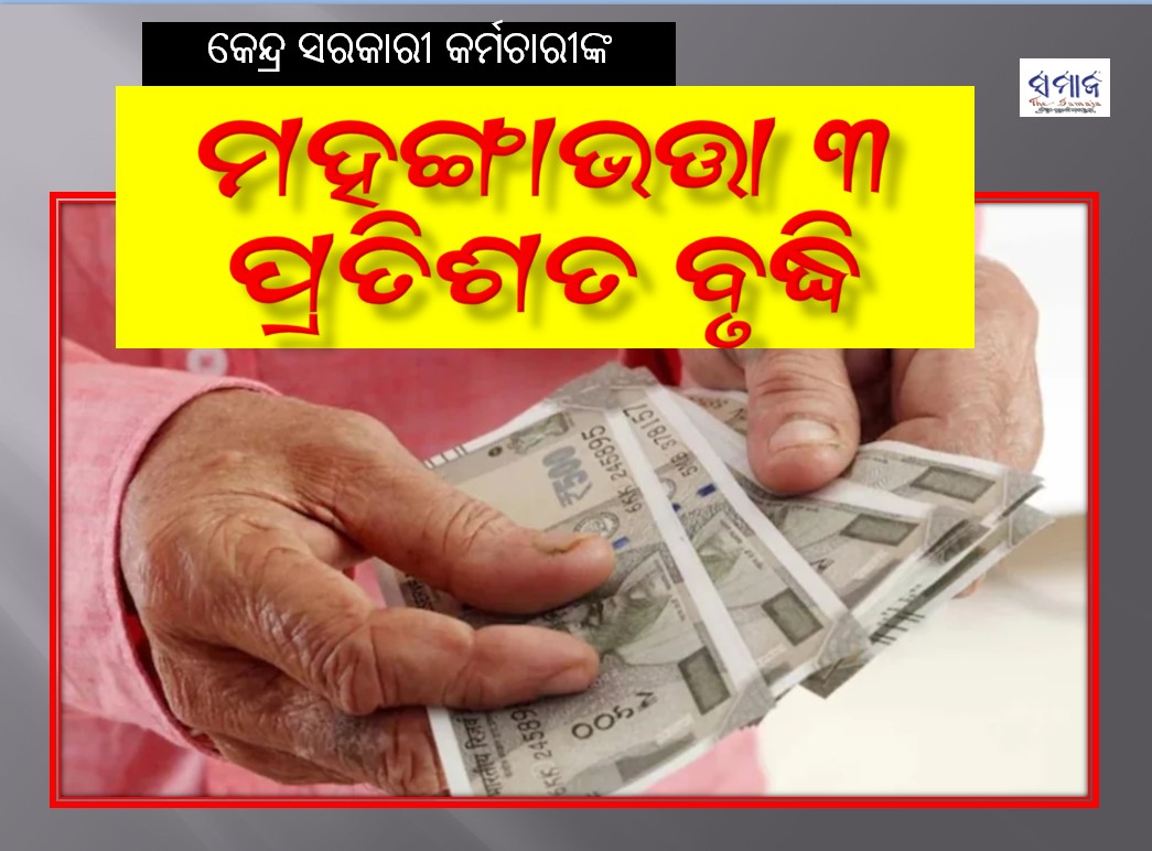 ଡେସ୍କ: କେନ୍ଦ୍ର କ୍ୟାବିନେଟ କେନ୍ଦ୍ର ସରକାରୀ କର୍ମଚାରୀଙ୍କୁ ମହଙ୍ଗା ଭତ୍ତା ଏବଂ ପେନସନଭୋଗୀଙ୍କୁ ମହଙ୍ଗା ସହାୟତା ୩% ମଞ୍ଜୁର କରିଛି। ନୂଆଦିଲ୍ଲୀରେ ବୁଧବାର ଅନୁଷ୍ଠିତ କ୍ୟାବିନେଟ ବୈଠକ ପରେ ଗଣମାଧ୍ୟମକୁ ସୂଚନା ଦେଇ ସୂଚନା ଏବଂ ପ୍ରସାରଣ ମନ୍ତ୍ରୀ ଅଶ୍ୱିନୀ ବୈଷ୍ଣବ କହିଛନ୍ତି ଯେ ଏହାଦ୍ୱାରା ପ୍ରାୟ ୪୯.୨ ଲକ୍ଷ କେନ୍ଦ୍ର ସରକାରୀ କର୍ମଚାରୀ ଏବଂ ୬୮.୭ ଲକ୍ଷ ପେନସନଭୋଗୀ ଉପକୃତ ହେବେ। ସେ କହିଛନ୍ତି ଯେ ଏହା ପିଛିଲା ଭାବେ ଚଳିତ ବର୍ଷ ଜୁଲାଇ ୧ରୁ କାର୍ଯ୍ୟକାରୀ ହେବ।