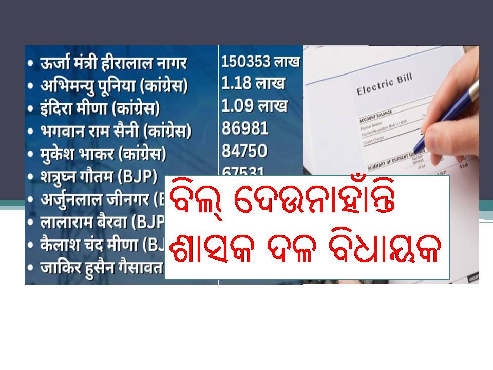 ରାଜସ୍ଥାନ ସରକାରରେ ଯେଉଁ ବିଧାୟକ ଏବଂ ମନ୍ତ୍ରୀଙ୍କ ବିଲ୍ ବାକି ରହିଛି ସେମାନଙ୍କ ନାମ ଜାଣିଲେ ଆପଣ ଆଶ୍ଚର୍ଯ୍ୟ ହୋଇଯିବେ । ୨୯ଜଣ ବିଧାୟକଙ୍କୁ ୩୦ଲକ୍ଷ ବିଲ ଦେବାକୁ ପଡିବ । ଏଥିରେ ଶାସକ ଦଳ ବିଜେପିର ୧୬ଜଣ ଏବଂ କଂଗ୍ରେସର ୯ଜଣ ବିଧାୟକ ରହିଛନ୍ତି । ଭାରତ ଆଦିବାସୀ ପାର୍ଟିର ୨ଜଣ ଏବଂ ସ୍ୱାଧୀନ ବିଧାୟକ ୨ଜଣ ରହିଛନ୍ତି । ଏହି ଖିଲାପୀଙ୍କ ତାଲିକା ମଧ୍ୟ ପ୍ରସ୍ତୁତ କରାଯାଇଛି । କିନ୍ତୁ ସେମାନଙ୍କର ବିଦ୍ୟୁତ ସଂଯୋଗ କାଟିବା ତ ଦୂରର କଥା, ବିଦ୍ୟୁତ୍ ବିଭାଗ ଆଜି ପର୍ଯ୍ୟନ୍ତ ସେମାନଙ୍କୁ ବକେୟା ରାଶି ଆଦାୟ ପାଇଁ ନୋଟିସ୍ ପଠାଇବାକୁ ସାହସ କରିନାହିଁ ।
