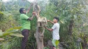 ହରଭଙ୍ଗା : ଗ୍ରୀଷ୍ମ ପ୍ରାରମ୍ଭରୁ ଅଧିକାଂଶ ପ୍ରାକୃତିକ ଜଳାଶୟ ସବୁ ଶୁଖିଲା ପଡିଲାଣି। ଆରମ୍ଭରୁ ଯେଉଁ ଭଳି ଭାବେ ଗ୍ରୀଷ୍ମ ତାତି ଅନୁଭୂତ ହେଲାଣି ତାହା ଆଗକୁ କେଉଁରୂପ ଧାରଣ କରିବ ତାହା ଜଳ ଜଳ ହୋଇ ଦେଖାଦେଲାଣି। ଏବେଠାରୁ ବିକଳ୍ପ ଚିନ୍ତା କରାନଗଲେ ମଣିଷ ଠାରୁ ଆରମ୍ଭ କରି ପଶୁପକ୍ଷୀଙ୍କ ଜୀବନ ଯାପନ ଦୁର୍ବିସହ ଆଶଙ୍କା ଦେଖାଦେଲାଣି । ବର୍ତ୍ତମାନର ଗ୍ରୀଷ୍ମ ତାତି ଏବଂ ଆଗାମୀ ଗ୍ରୀଷ୍ମ ପ୍ରବାହକୁ ଆଖି ଆଗରେ ରଖି ଛତ୍ରଙ୍ଗ ପଞ୍ଚାୟତ ଅନ୍ତର୍ଗତ ଗୁଣ୍ଡୁରୀସାହି ଗ୍ରାମର ସ୍ବେଛାସେବୀ ମାନେ ଏକ ନିଆରା ପଦକ୍ଷେପ ନେଇଛନ୍ତି। ନେହେରୁ ଯୁବ କେନ୍ଦ୍ରର ପୂର୍ବତନ କର୍ମକର୍ତ୍ତା ସୁଧିର ଦୀପଙ୍କ ତତ୍ୱାବଧାନରେ ଗ୍ରାମର ପିଲାମାନଙ୍କୁ ନେଇ ନିକଟସ୍ଥ ଖରଭୂଇଁ ମୁଣ୍ଡେଶ୍ୱର ଗ୍ରାମ୍ୟ ଜଙ୍ଗଲରେ ଗଛଗୁଡିକରେ ପକ୍ଷୀ ମାନଙ୍କ ପାଇଁ ଚଢେଇ ବସା କରିବା ସହ ପିଇବା ପାଇଁ ମାଟି କଳସୀରେ ପାଣି ରଖିଛନ୍ତି । ତେବେ ସ୍ବେଛାସେବୀଙ୍କ ଏହି ଭଳି ମହତ କାର୍ଯ୍ୟ ପାଇଁ ବିଭିନ୍ନ ମହଲରୁ ପ୍ରଶଂସାର ସୁଅ ଛୁଟିଛି ।