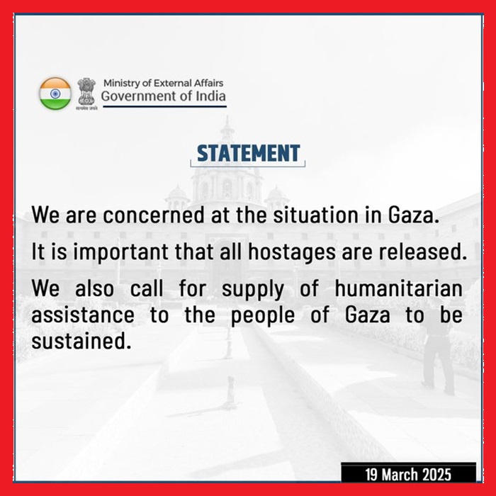 ଡେସ୍କ: ବୈଦେଶିକ ବ୍ୟାପାର ମନ୍ତ୍ରଣାଳୟ ଆଜି ଗାଜାର ସ୍ଥିତିକୁ ନେଇ ଚିନ୍ତା ପ୍ରକଟ କରିଛି। ଏକ ବିବୃତ୍ତିରେ ମନ୍ତ୍ରଣାଳୟ ସମସ୍ତ ବନ୍ଧକଙ୍କୁ ମୁକ୍ତ କରିବା ଉପରେ ଗୁରୁତ୍ୱାରୋପ କରିଛି। ଏଥିସହ ଗାଜାବାସୀଙ୍କୁ ମାନବିକ ସହାୟତା ଯୋଗାଣ ବଜାୟ ରଖିବାକୁ ଭାରତ ପକ୍ଷରୁ କୁହାଯାଇଛି।
