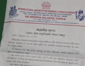 ଧାର୍ମିକ ସଂଗଠନକୁ ମିଥ୍ୟା ଆରୋପ ପ୍ରତ୍ୟରୋପ ବନ୍ଦ କରନ୍ତୁ । ଗଜପତି ମହାରାଜାଙ୍କ ଆଦେଶ ପରେ ,ଆଜି ପର୍ଯ୍ୟନ୍ତ ଇସ୍କନ ଭାରତ ବର୍ଷରେ ଅଦିନିଆ ରଥଯାତ୍ରା କରିନାହିଁ , ବୋଲି କହିଛନ୍ତି ଇସ୍କନର ସନାତନ ସଂସ୍କୃତି ପ୍ରଚାରକ ପ୍ରାଣେଶ୍ୱର କ୍ରୀଷ୍ଣ ଦାସ ।