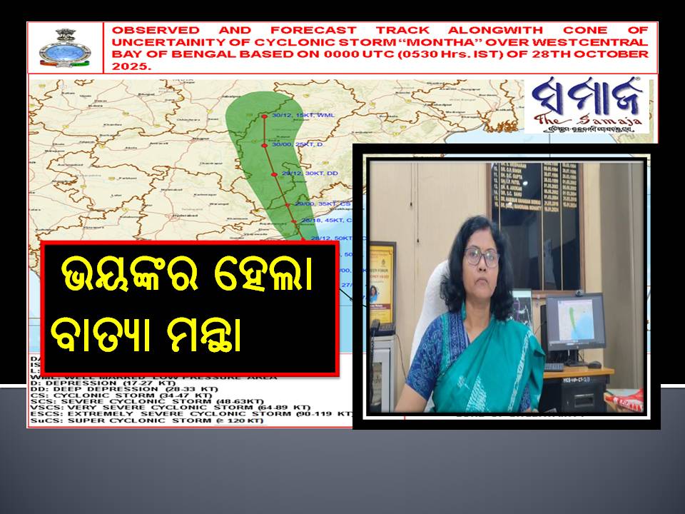 ଭୁବନେଶ୍ୱର: ଆଜି ସକାଳ ୫ଟା ୩୦ରୁ ଭୟଙ୍କର ବାତ୍ୟାରେ ପରିଣତ ହୋଇଛି ମନ୍ଥା । ବର୍ତ୍ତମାନ ଏହା ଗୋପାଳପୁର ଠାରୁ ୫୫୦କିମି ଦୂର ଦକ୍ଷିଣ-ଦକ୍ଷିଣ ପଶ୍ଚିମ ଦିଗରେ ରହିଛି । ଏହା ଉତ୍ତର- ଉତ୍ତରପଶ୍ଚିମ ଦିଗରେ ଗତି କରି ଆଜି ସନ୍ଧ୍ୟା କିମ୍ବା ରାତିରେ ମଛଲିପାଟନମ୍ ଓ କଳିଙ୍ଗପାଟନମ୍ ମଧ୍ୟରେ ଥିବା କାକିନାଡାରେ ଅତିକ୍ରମ କରିବ ।