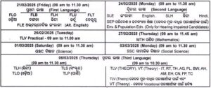 କଟକ: ଆସନ୍ତା ଫେବୃଆରୀ ୨୧ ରୁ ମାଟ୍ରିକ ପରୀକ୍ଷା। ଉଭୟ ରେଗୁଲାର ଏକ୍ସ ରେଗୁଲାର ପାଇଁ ଅନୁଷ୍ଠିତ ହେବ ପରୀକ୍ଷା। ଫ୍ରେବୁଆରୀ ୨୧ରୁ ମାର୍ଚ୍ଚ ୬ ତାରିଖ ପର୍ଯ୍ୟନ୍ତ ସମସ୍ତ ପରୀକ୍ଷା ଚାଲିବ । ପ୍ରଥମ ଦିନ ଅର୍ଥାତ ୨୧ ରେ ମାତୃଭାଷା ଓଡ଼ିଆ , ୨୪ ତାରିଖ ରେ ହେବ ଦ୍ୱିତୀୟ ଭାଷା ଇଂରାଜୀ , ୨୭ ତାରିଖରେ ଗଣିତ , ମାର୍ଚ୍ଚ ୧ ରେ ସାଧାରଣ ବିଜ୍ଞାନ , ମାର୍ଚ୍ଚ ୩ ସାମାଜିକ ବିଜ୍ଞାନ , ମାର୍ଚ୍ଚ ୬ ରେ ତୃତୀୟ ଭାଷା ହିନ୍ଦୀ କିମ୍ବା ସଂସ୍କୃତ। ପରୀକ୍ଷା ସକାଳ ୯ ରୁ ଆରମ୍ଭ ହୋଇ ୧୧.୩୦ ପର୍ଯ୍ୟନ୍ତ ଚାଲିବ। କେବଳ ଗଣିତ ପାଇଁ ଅଧିକ ୧୫ ମିନିଟ ସମୟ ଦିଆଯିବ । ଅର୍ଥାତ ୧୧.୩୦ ପରିବର୍ତ୍ତେ ୧୧.୪୫ ରେ ଶେଷ ହେବ ଗଣିତ ପରୀକ୍ଷା। ଉଭୟ ରେଗୁଲାର ଏକ୍ସ ରେଗୁଲାର ପରୀକ୍ଷା ଗୋଟିଏ ସିଟିଂ ଓ ଗୋଟିଏ ପ୍ରଶ୍ନ ପତ୍ରରେ ହେବ। ଏନେଇ ବୋର୍ଡ ପକ୍ଷରୁ ପ୍ରେସ ବିଜ୍ଞପ୍ତି ଜରିଆରେ ସୂଚନା ଦିଆଯାଇଛି।