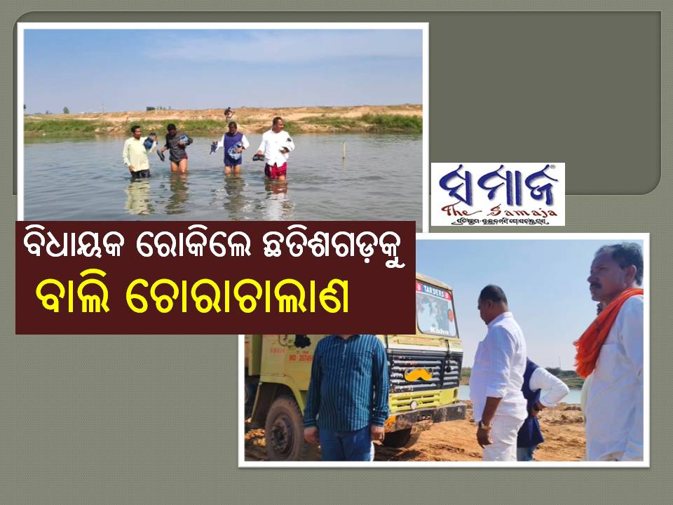 ଭାସ୍କେଲ ନଦୀର ଅଣ୍ଟାଏ ପାଣିରେ ଚାଲିଲେ ବିଧାୟକ: ରୋକିଲେ ଛତିଶଗଡ଼କୁ ବାଲି ଚୋରାଚାଲାଣ