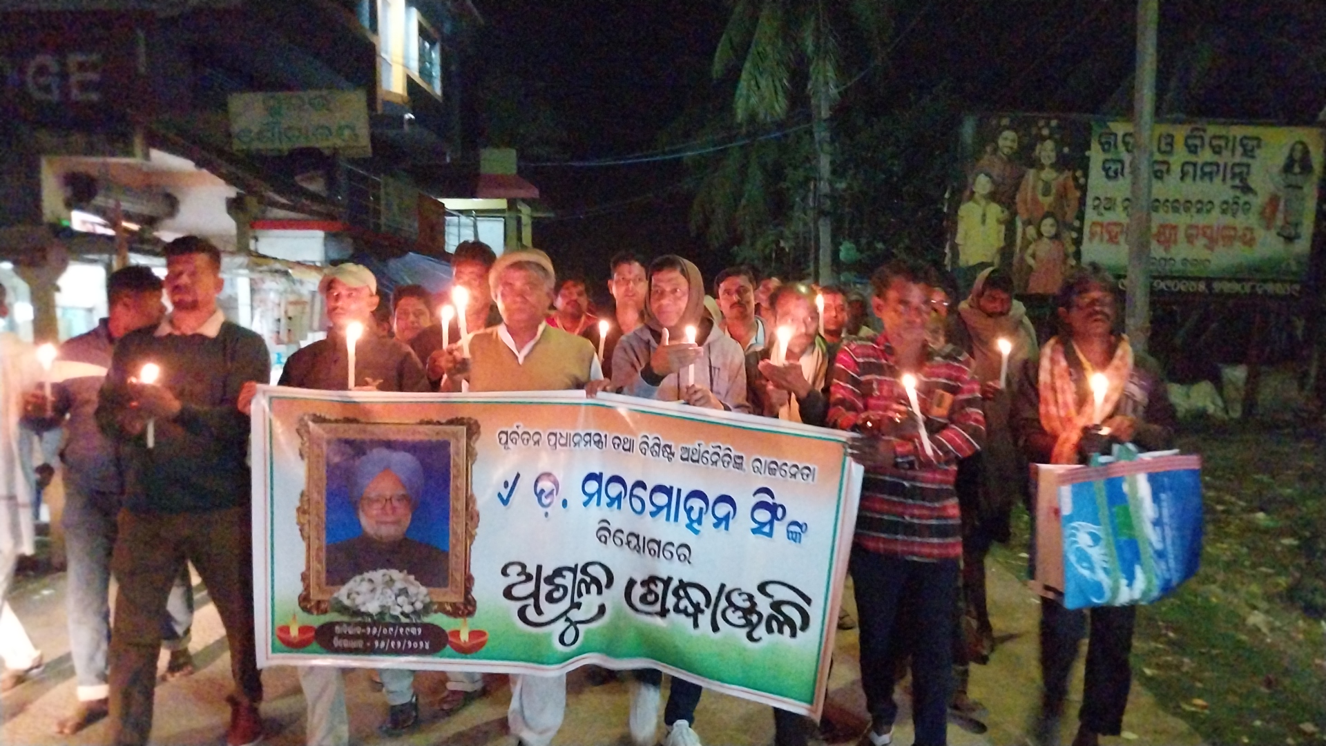 ଆରଡି: ଭାରତର ପୂର୍ବତନ ପ୍ରଧାନମନ୍ତ୍ରୀ ଡ. ମନମୋହନ ସିଂଙ୍କର ପରଲୋକ ଘଟିବା ପରେ ତାଙ୍କର ଅମର ଆତ୍ମାର ସଦଗତି କାମନା କରି ଆରଡି ସମେତ ନାନ୍ଦପୁର, ଓଳଗ, ସୁନ୍ଦରପୁର ୪ଟି ପଞ୍ଚାୟତର କଂଗ୍ରେସ କର୍ମୀ ଓ ଶୁଭେଛୁମାନେ ଶନିବାର ସନ୍ଧ୍ୟାରେ ଆରଡି ବସଷ୍ଟାଣ୍ଡ ଠାରୁ ଆଖଣ୍ଡଳମଣିଙ୍କ ମନ୍ଦିର ଯାଏଁ ମହମବତୀ ଜାଳି ନିରବ ଶୋଭାଯାତ୍ରା କରିଥିଲେ। ଶତାଧିକ କର୍ମୀ ଓ ଶୁଭେଛୁ ମହମବତୀ ଧରି ମୁଖ୍ୟ ବଜାର ସହ ସମସ୍ତ ସାହି ପରିକ୍ରମା କରିବା ପରେ ବାବା ଆଖଣ୍ଡଳମଣିଙ୍କ ମନ୍ଦିର ସିଂହ ଦ୍ବାର ସମୁଖରେ ସ୍ବର୍ଗତ ସିଂଙ୍କର ଅମର ଆତ୍ମାର ସଦଗତି କାମନା କରିଥିଲେ।