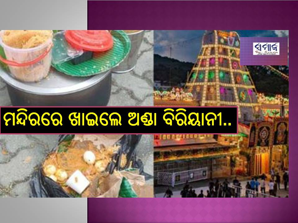 ହାଇଦ୍ରାବାଦ : ତିରୁମାଳା ମନ୍ଦିର ପରିସରରେ ଶୁକ୍ରବାର କିଛି ଲୋକ ଅଣ୍ଡା ବିରିୟାନୀ ଖାଉଥିବା ଦୃଶ୍ୟ ସାମ୍ନାକୁ ଆସିବା ପରେ ହଇଚଇ ସୃଷ୍ଟି ହୋଇଛି। ୱାଇଏସଆରସିପି ସମେତ ବିଭିନ୍ନ ବିପକ୍ଷ ଦଳ ଅଲୀପିରି ଚେକ୍ ପଏଣ୍ଟରେ ସୁରକ୍ଷାରେ ଅବହେଳାକୁ ନେଇ ତିରୁମାଳା ତିରୁପତି ଦେବସ୍ଥାନମ (ଟିଟିଡି) ସହ ଆଲୋଚନା ସହ ଏହାର ପ୍ରତିବାଦ କରିଛନ୍ତି। ତିରୁମାଳା ମନ୍ଦିରରେ ନିଶା, ଆମିଷ ଭୋଜନ, ସିଗାରେଟ୍, ତମାଖୁ ଆଦି ସେବନ ଉପରେ ପ୍ରତିବନ୍ଧକ ରହିଥିବା ପରେ ମଧ୍ୟ କିଛି ଲୋକେ ବିରିୟାନୀ ଖାଉଥିବା ଅବସ୍ଥାରେ ଧରାପଡିଛନ୍ତି।