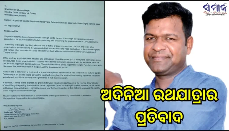 ସମାଜ ଡିଜିଟାଲ ଡେସ୍କ: ଅଦିନିଆ ରଥଯାତ୍ରକୁ ବିରୋଧ କରିଛନ୍ତି ଅନ୍ତର୍ଜାତୀୟ ବାଲୁକା ଶିଳ୍ପୀ ତଥା ପୂର୍ବତନ ପରିଚାଳନା କମିଟି ସଦସ୍ୟ ସୁଦର୍ଶନ ପଟ୍ଟନାୟକ। ଏ ନେଇ ସେ ମୁଖ୍ୟମନ୍ତ୍ରୀ ମୋହନ ଚରଣ ମାଝୀଙ୍କୁ ଭେଟିଛନ୍ତି। ଇସ୍କନ ପକ୍ଷରୁ ଯେଉଁଭଳି ଭାବେ ଅନ୍ୟ ଦିନରେ ରଥଯାତ୍ରା ଆୟୋଜନ କରାଯାଉଛି ତା’ ଉପରେ ତୁରନ୍ତ କାର୍ଯ୍ୟାନୁଷ୍ଠାନ ନେବାକୁ ସୁଦର୍ଶନ ଅନୁରୋଧ କରିଛନ୍ତି। ଏହାକୁ କିପରି ବନ୍ଦ କରାଯିବ ସେଥିପାଇଁ ଗୁରୁତ୍ଵ ଦେବାକୁ ସେ ମୁଖ୍ୟମନ୍ତ୍ରୀଙ୍କ ସହ ଆଲୋଚନା କରିଛନ୍ତି।