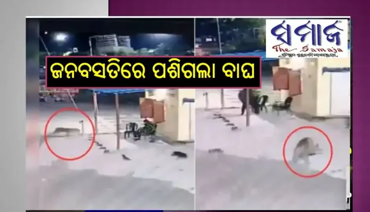 ଭିଡିଓ ଦେଖିଲେ ଭୟ ଲାଗିବ; ଜନବସତିରେ ପଶି କୁକୁରକୁ ଟାଣି ନେଲା ବାଘ, ବଞ୍ଚିଗଲେ ସିକ୍ୟୁରିଟି ଗାର୍ଡ