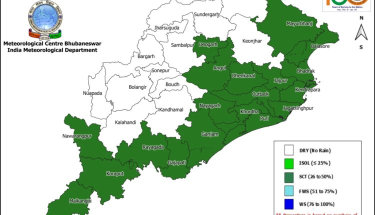ପାଣିପାଗ କେନ୍ଦ୍ର ପୂର୍ବାନୁମାନ ଅନୁଯାୟୀ, ଆଜି ସୁନ୍ଦରଗଡ଼, କେନ୍ଦୁଝର, ମୟୂରଭଞ୍ଜ, ଅନୁଗୁଳ, ଢେଙ୍କାନାଳ, ରାୟଗଡ଼ା, କୋରାପୁଟ, ମାଲକାନଗିରି, ବାଲେଶ୍ୱର, ଭଦ୍ରକ, ଯାଜପୁର, କେନ୍ଦ୍ରାପଡ଼ା, କଟକ, ଜଗତସିଂହପୁର, ପୁରୀ, ଖୋର୍ଦ୍ଧା, ନୟାଗଡ଼, ଗଞ୍ଜାମ, ଗଜପତି ଓ ନବରଙ୍ଗରପୁର ଘଡ଼ଘଡ଼ି ସହ ହାଲୁକାରୁ ମଧ୍ୟମ ଧରଣର ବର୍ଷା ହେବାର ସମ୍ଭାବନା ରହିଛି। ମୟୂରଭଞ୍ଜ, ଗଜପତି, ରାୟଗଡ଼ା ଓ କୋରାପୁଟରେ ୩୦ରୁ ୪୦ କିଲୋମିଟର ବେଗରେ ପବନ ସହ ଧୂଳିଝଡ଼ ଆଶଙ୍କା ଅଛି। ଅନ୍ୟପକ୍ଷରେ ଆଜି ଓ ୧୩, ୧୪, ୧୫ ତାରିଖରେ କାଳବୈଶାଖୀ ପ୍ରକୋପ ଅଧିକ ରହିବ। ୧୬ ଓ ୧୭ରେ କାଳବୈଶାଖୀ ପ୍ରକୋପ କମିଲେ ମଧ୍ୟ କେତେକ ସ୍ଥାନରେ ଜାରି ରହିବ।