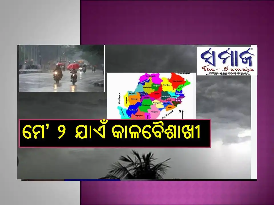 ଭୁବନେଶ୍ୱର : ପ୍ରବଳ ଖରା ଓ ଗରମରୁ ଆଶ୍ୱସ୍ତି ଆଣିଛି କାଳବୈଶାଖୀ ବର୍ଷା। ଆସନ୍ତା ମେ’ ୨ ତାରିଖ ପର୍ଯ୍ୟନ୍ତ ରାଜ୍ୟର ଅନେକ ସ୍ଥାନରେ କାଳବୈଶାଖୀ ବର୍ଷା ସମ୍ଭାବନା ଥିବା ନେଇ ପାଣିପାଗ ବିଭାଗ ପକ୍ଷରୁ ସୂଚନା ମିଳିଛି । କେତେକ ସ୍ଥାନରେ ବଜ୍ରପାତ ସହ କୁଆପଥର ବର୍ଷା ମଧ୍ୟ ହେବ। ପଶ୍ଚିମ ଓ ଆଭ୍ୟନ୍ତରୀଣ ଓଡିଶାରେ ତାପମାତ୍ରା ପ୍ରାୟ ୫ ଡିଗ୍ରୀ ପର୍ଯ୍ୟନ୍ତ ହ୍ରାସ ପାଇଛି। ଏହାସହ ମଙ୍ଗଳବାର ୫ ଜିଲା ମୟୁରଭଞ୍ଜ, କେନ୍ଦୁଝର, ବାଲେଶ୍ୱର, ଭଦ୍ରକ ଓ ଯାଜପୁରରେ ବିଜୁଳି, ଘଡଘଡି ସହ ବର୍ଷା ନେଇ ଅରେଞ୍ଜ ୱାର୍ଣ୍ଣିଂ ଜାରି କରାଯାଇଛି । ଜଗତସିଂହପୁର, କେନ୍ଦ୍ରାପଡା, କଟକ, ଅନୁଗୁଳ ଓ ଢେଙ୍କାନାଳକୁ ବର୍ଷା ପାଇଁ ୟେଲୋ ୱାର୍ଣ୍ଣିଂ ଜାରି କରାଯାଇଛି । ବର୍ଷା, ପବନ ସମୟରେ ସତର୍କ ରହିବାକୁ ପାଣିପାଗ ବିଭାଗ ପକ୍ଷରୁ ପରାମର୍ଶ ଜାରି କରାଯାଇଛି।