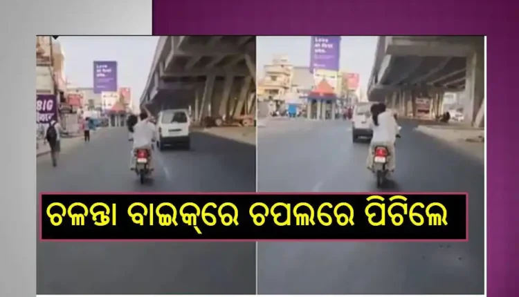ଦେଖନ୍ତୁ ଭିଡିଓ ; ଚଳନ୍ତା ବାଇକ୍ରେ ସ୍ୱାମୀଙ୍କୁ ଚପଲରେ ପିଟିଲେ ସ୍ତ୍ରୀ..